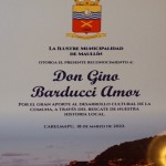 Efectivamente, al conocer a GINO BARDUCCI AMOR nos encontramos con una persona en constante búsqueda de investigación de su querido CARELMAPU, al cual lo une una historia de muchos años, como son todas aquellas dignas de contar, que poseen capítulos de amor y desamor, de alegría y desilusión, pero por sobre todo de muchos recuerdos, por ambas partes. Tanto es así que por iniciativa y reconocimiento de la comunidad, una calle de la localidad fue rebautizada con el nombre del escritor, honor muy difícilmente entregado en vida a alguna personalidad.